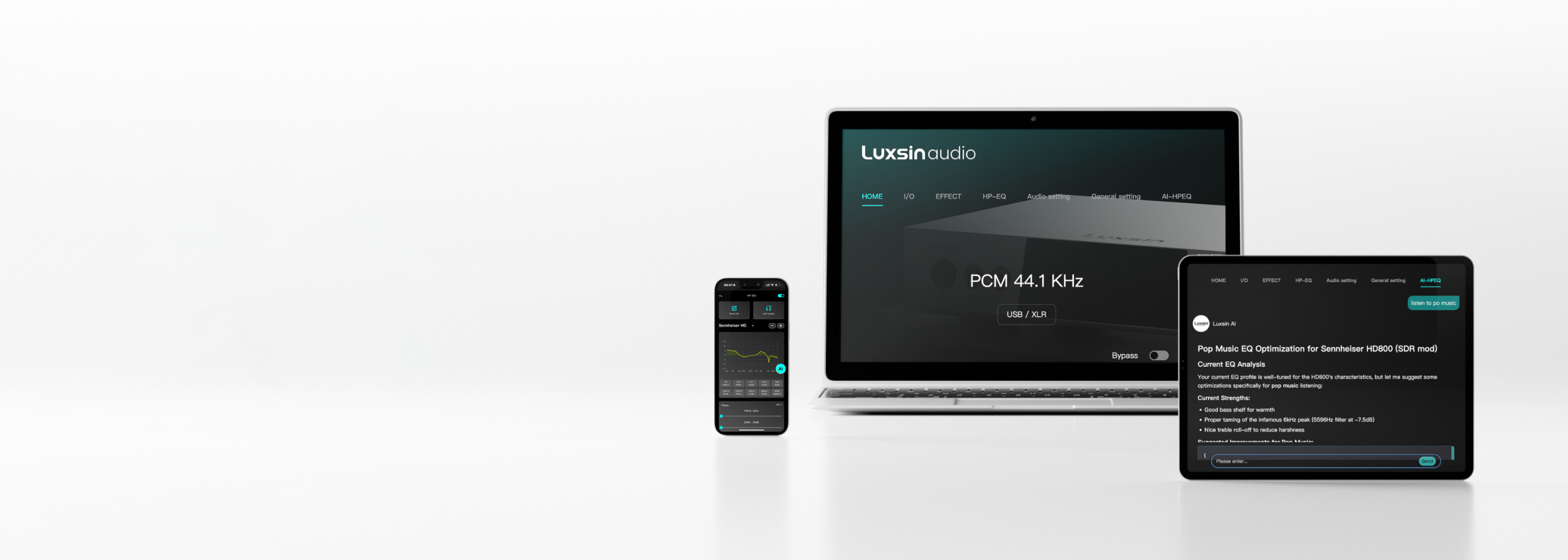 The upgraded headphone impedance detection system now covers all output interfaces (XLR4,4.4mm, and 6.35mm) enabling precise impedance auto-detection and automatic matching of the optimal gain setting. UtilizingLuxsin’s proprietary bypass detection technology, the system operates completely isolated from the main audio path, guaranteeing absolutely no impact on sound purity. Users enjoy both accurate impedance matching with smart gain adjustment and uncompromised high‑fidelity audio quality.